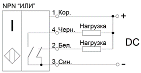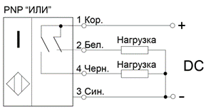 · «ИЛИ» - датчик имеет два выхода, один из них нормально открытый («НО»), другой – нормально замкнутый («НЗ»).