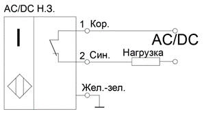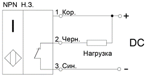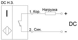 · «НЗ» – нормально замкнутый (или нормально закрытый, «NC»). В нормальном состоянии (объект воздействия отсутствует) – ключ датчика замкнут, ток нагрузки протекает. При появлении объекта воздействия ключ датчика размыкается, ток нагрузки прерывается.