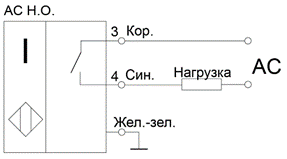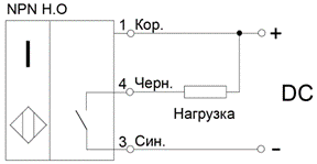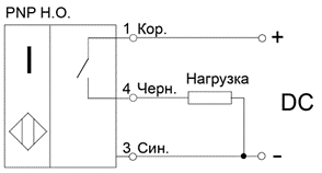 · «НО» – нормально открытый (или нормально разомкнутый, «NO»). В нормальном состоянии (объект воздействия отсутствует) – ток нагрузки не протекает, ключ датчика разомкнут. При появлении объекта воздействия ключ датчика замыкается, начинает протекать ток нагрузки.