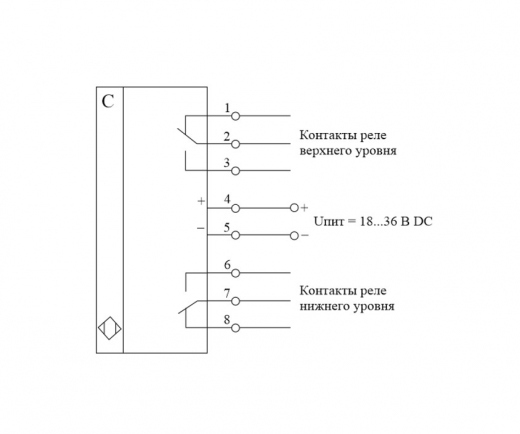 Два реле для программирования уровней (Питание 24 В DC. Два выходных реле (верхнего и нижнего уровня) и аналоговый выход 10-30 В)