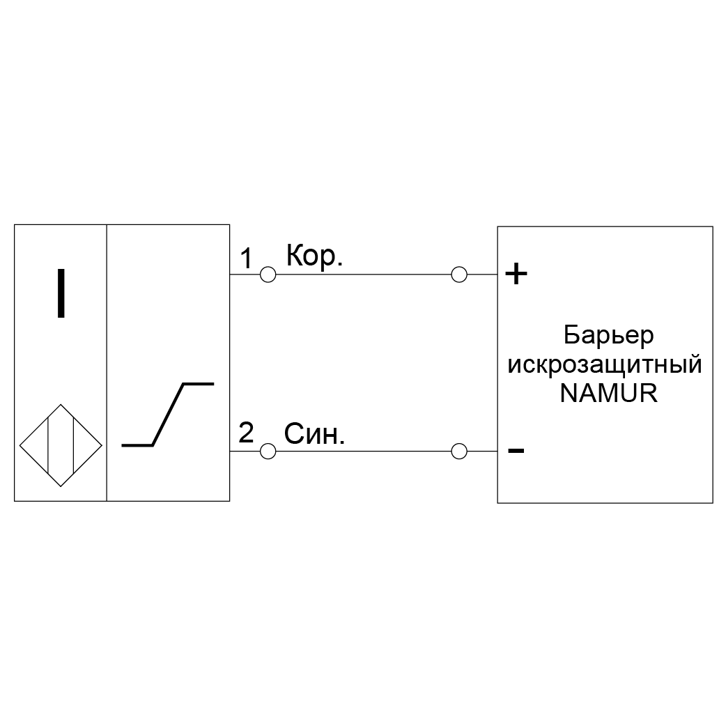 Индуктивный датчик взрывозащищенный ДВИ-М12-34В-1130-Х.2 в цилиндрическом корпусе из нержавеющей стали Ø12 мм, стандарт NAMUR, спроектирован с видом взрывозащиты искробезопасная электрическая цепь «ia» способен работать при низких значениях напряжения и тока.