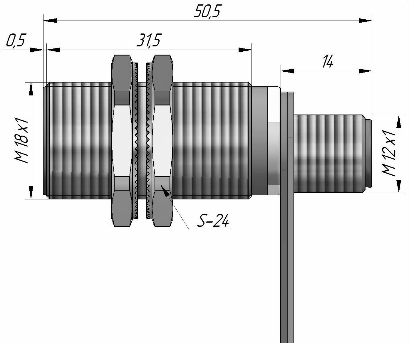 Индуктивный датчик взрывозащищенный ДВИ-М18-34Р-1130-Х.2 в цилиндрическом корпусе из нержавеющей стали Ø18 мм, стандарт NAMUR, спроектирован с видом взрывозащиты искробезопасная электрическая цепь «ia» способен работать при низких значениях напряжения и тока.