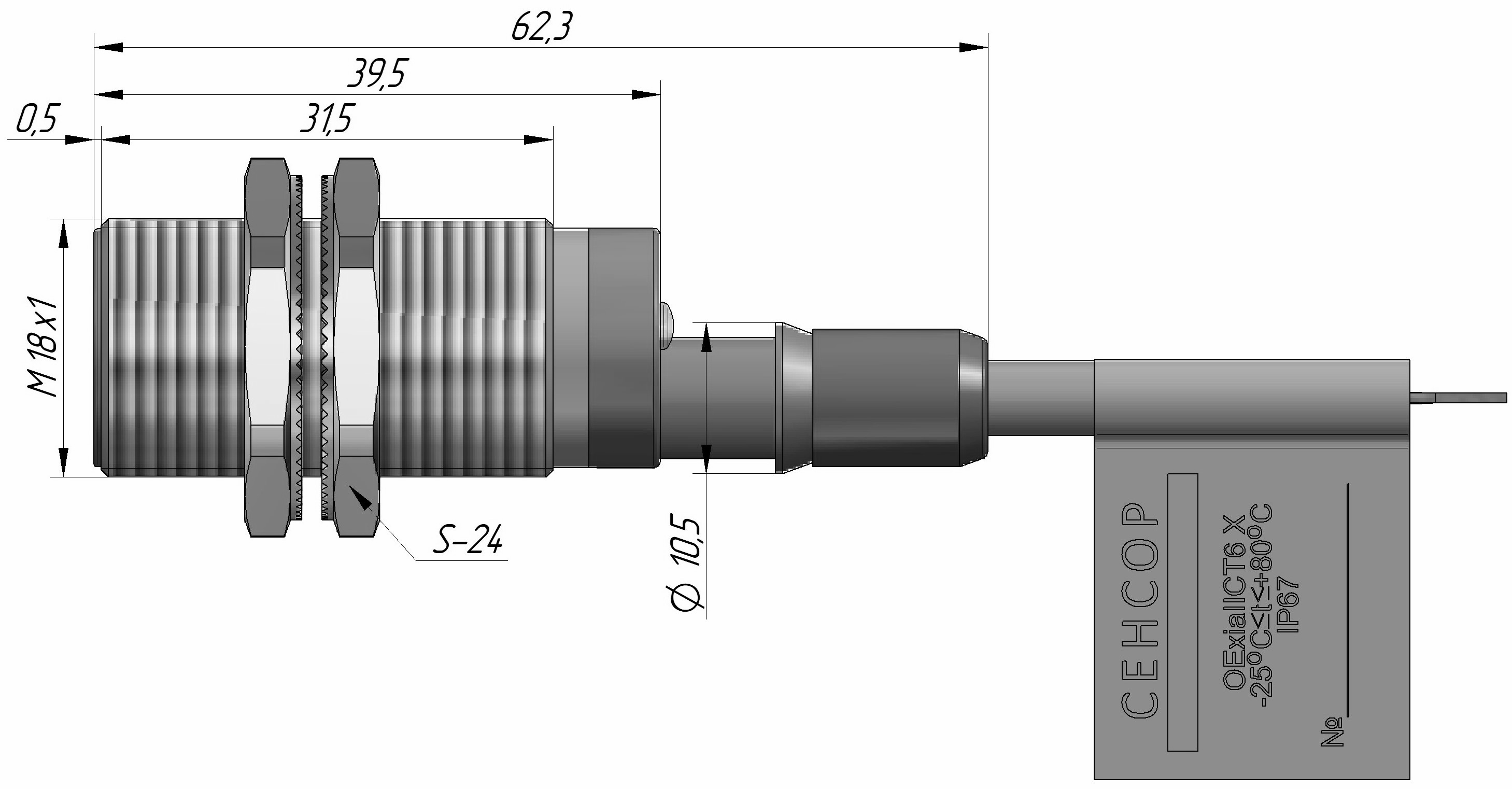 Индуктивный датчик взрывозащищенный ДВИ-М18-34С-1130-Х в цилиндрическом корпусе из никелированной латуни Ø18 мм, стандарт NAMUR, спроектирован с видом взрывозащиты искробезопасная электрическая цепь «ia» способен работать при низких значениях напряжения и тока.