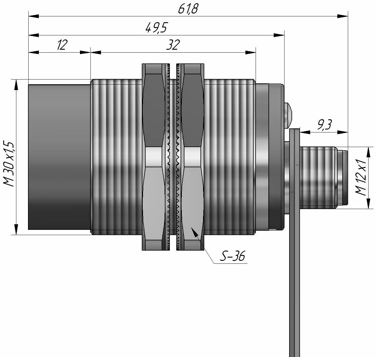 Индуктивный датчик взрывозащищенный ДВИ-М30-49Р-2130-Х.2 в цилиндрическом корпусе из нержавеющей стали Ø30 мм, стандарт NAMUR, спроектирован с видом взрывозащиты искробезопасная электрическая цепь «ia» способен работать при низких значениях напряжения и тока.