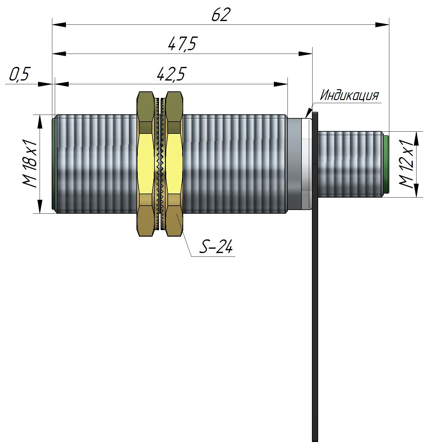 Индуктивный датчик ВБИ-М18-46Р-1113-С.6 в цилиндрическом корпусе из никелированной латуни Ø18 мм, в общепромышленном высокотемпературном исполнении.
