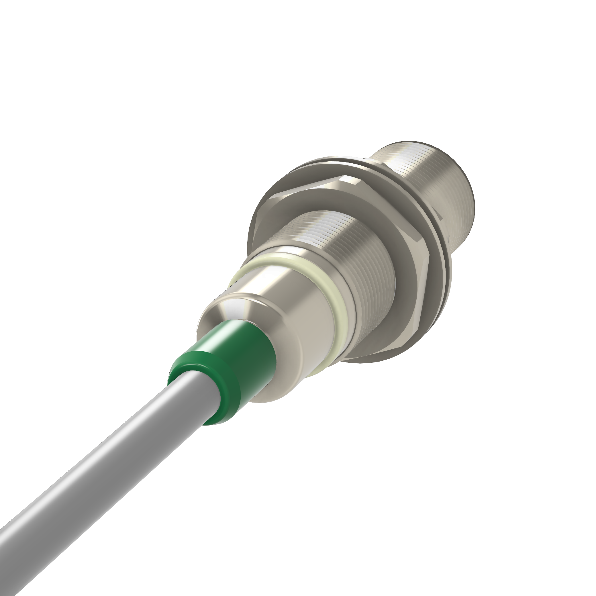 Индуктивный датчик ВБИ-М18-46В-1111-С.6 в цилиндрическом корпусе из никелированной латуни Ø18 мм, в общепромышленном высокотемпературном исполнении.