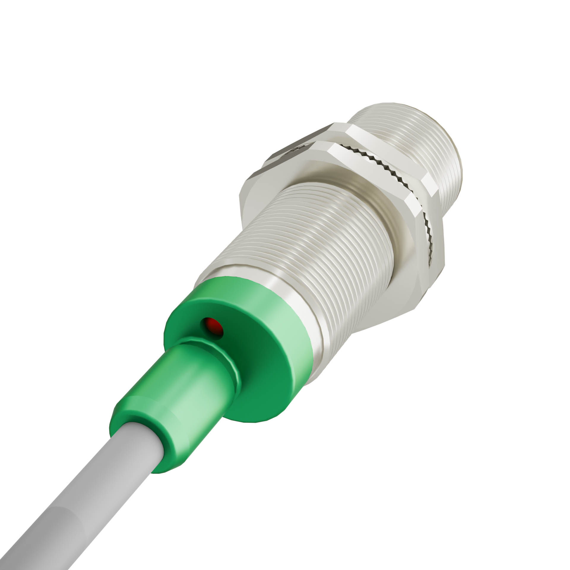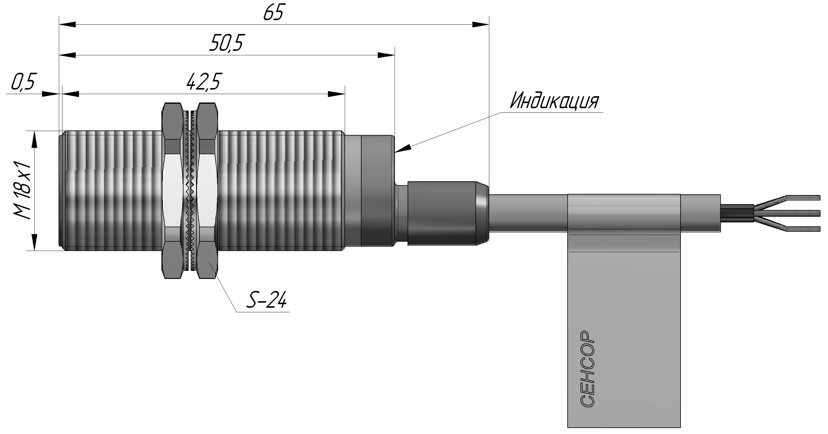 Индуктивный датчик ВБИ-М18-46В-1121-С.18 в цилиндрическом корпусе из никелированной латуни Ø18 мм, в общепромышленном исполнении.