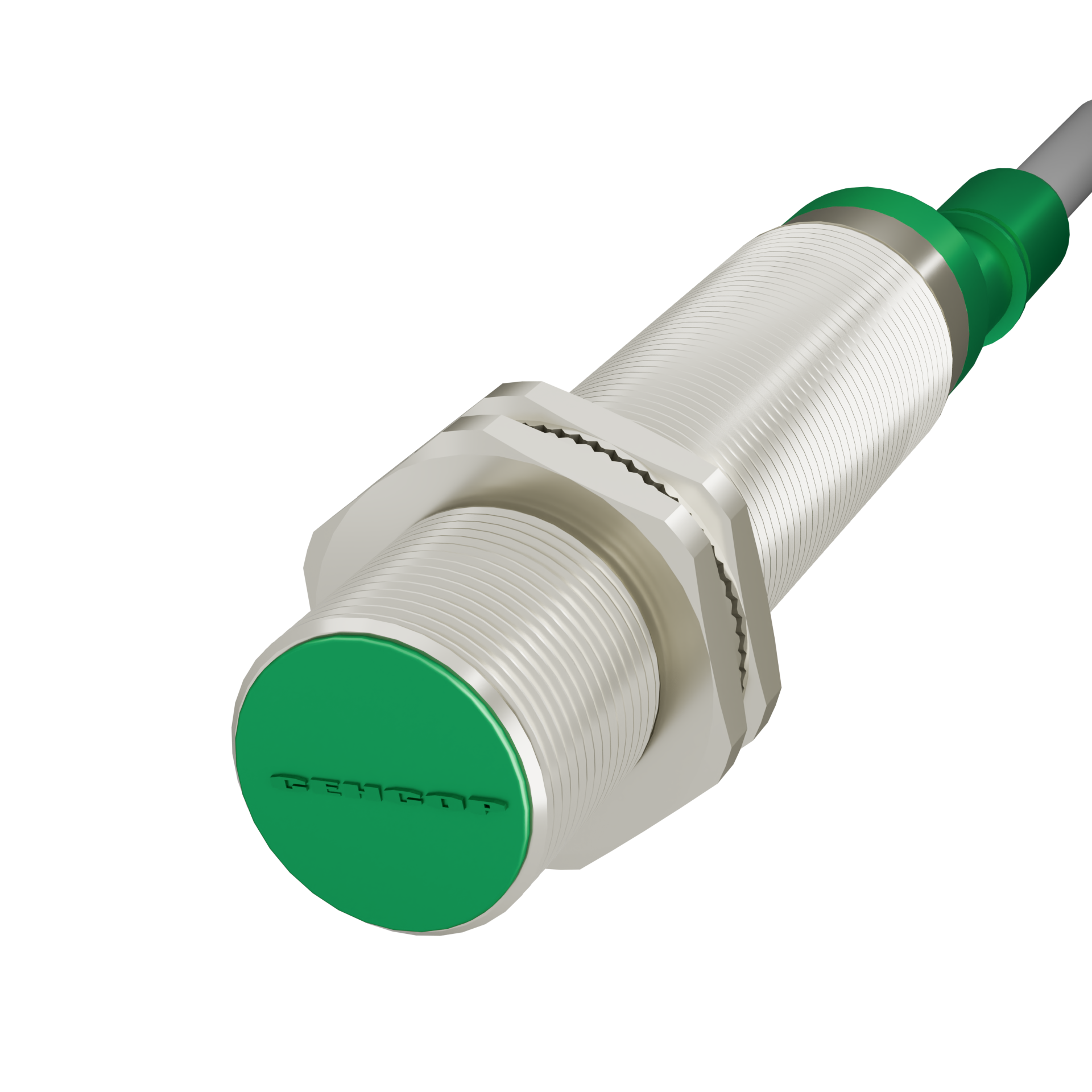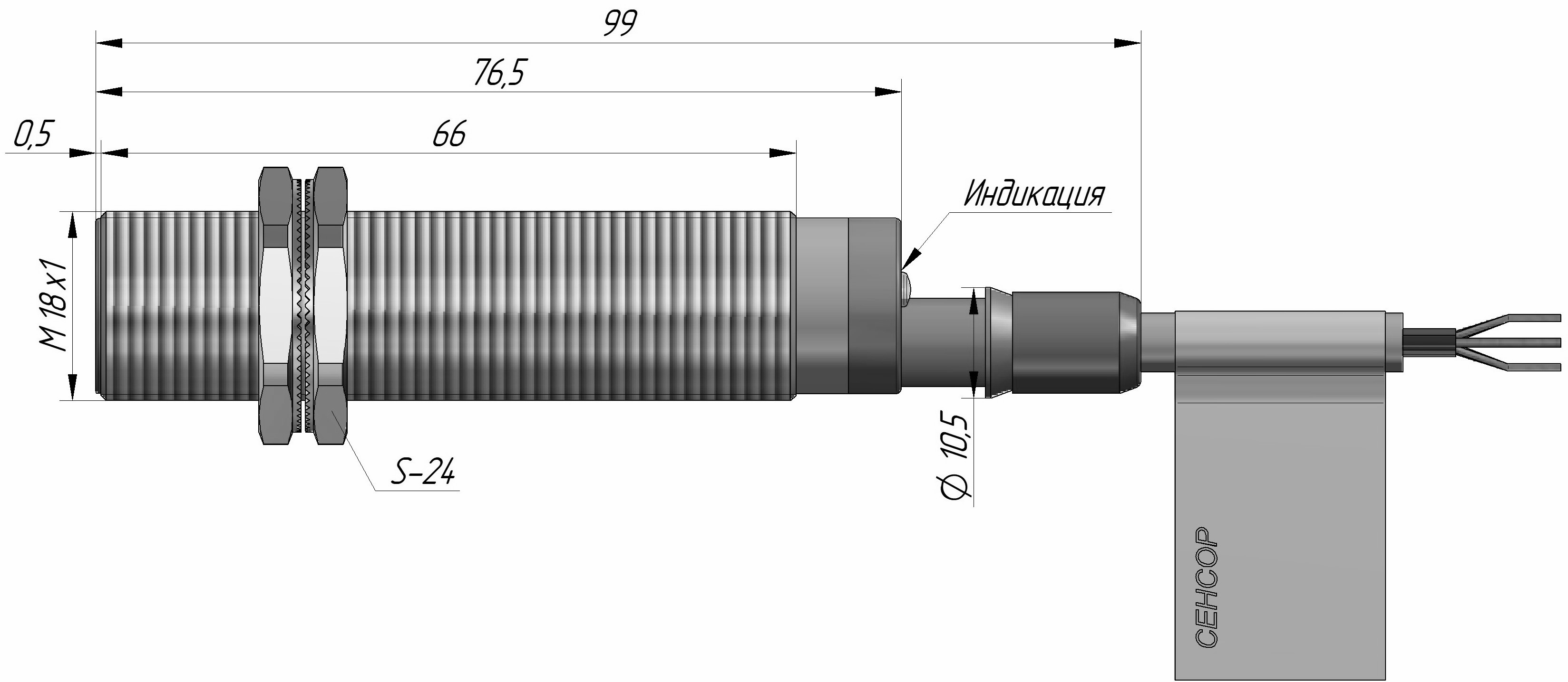 Индуктивный датчик ВБИ-М18-76С-1351-Л.51 в цилиндрическом корпусе из никелированной латуни Ø18 мм, в общепромышленном исполнении.