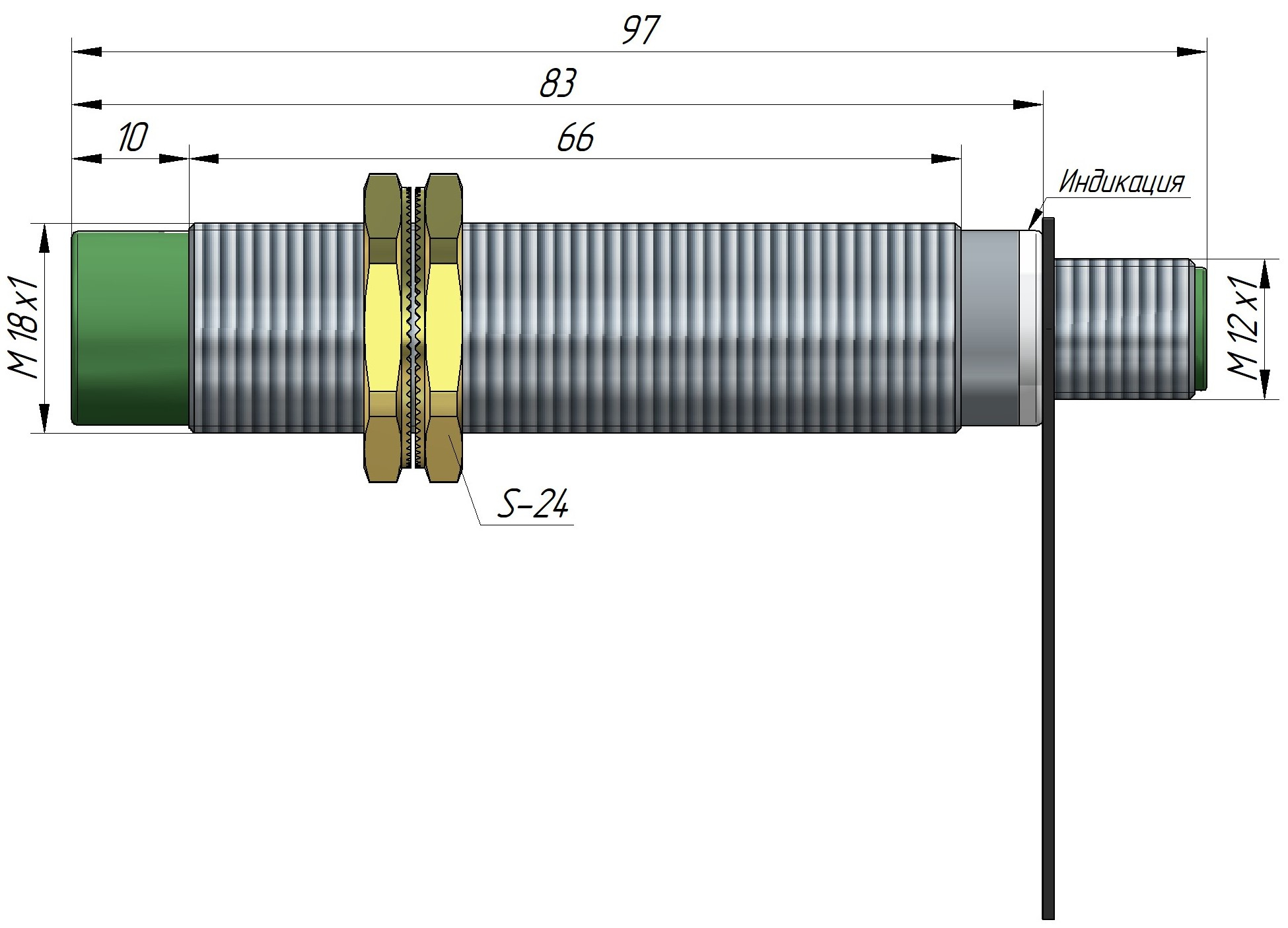 Индуктивный датчик ВБИ-М18-86Р-2113-С.6 в цилиндрическом корпусе из никелированной латуни Ø18 мм, в общепромышленном высокотемпературном исполнении.