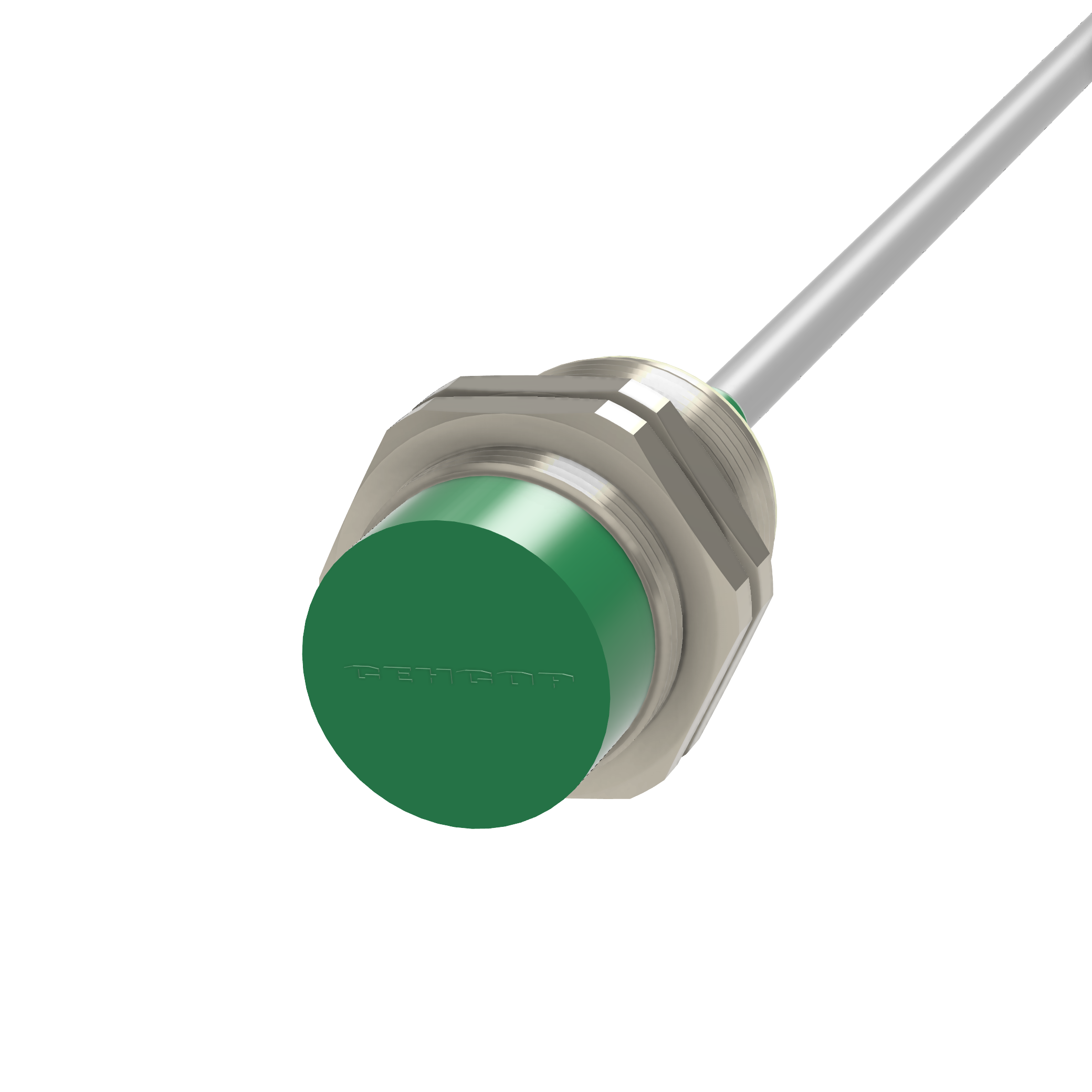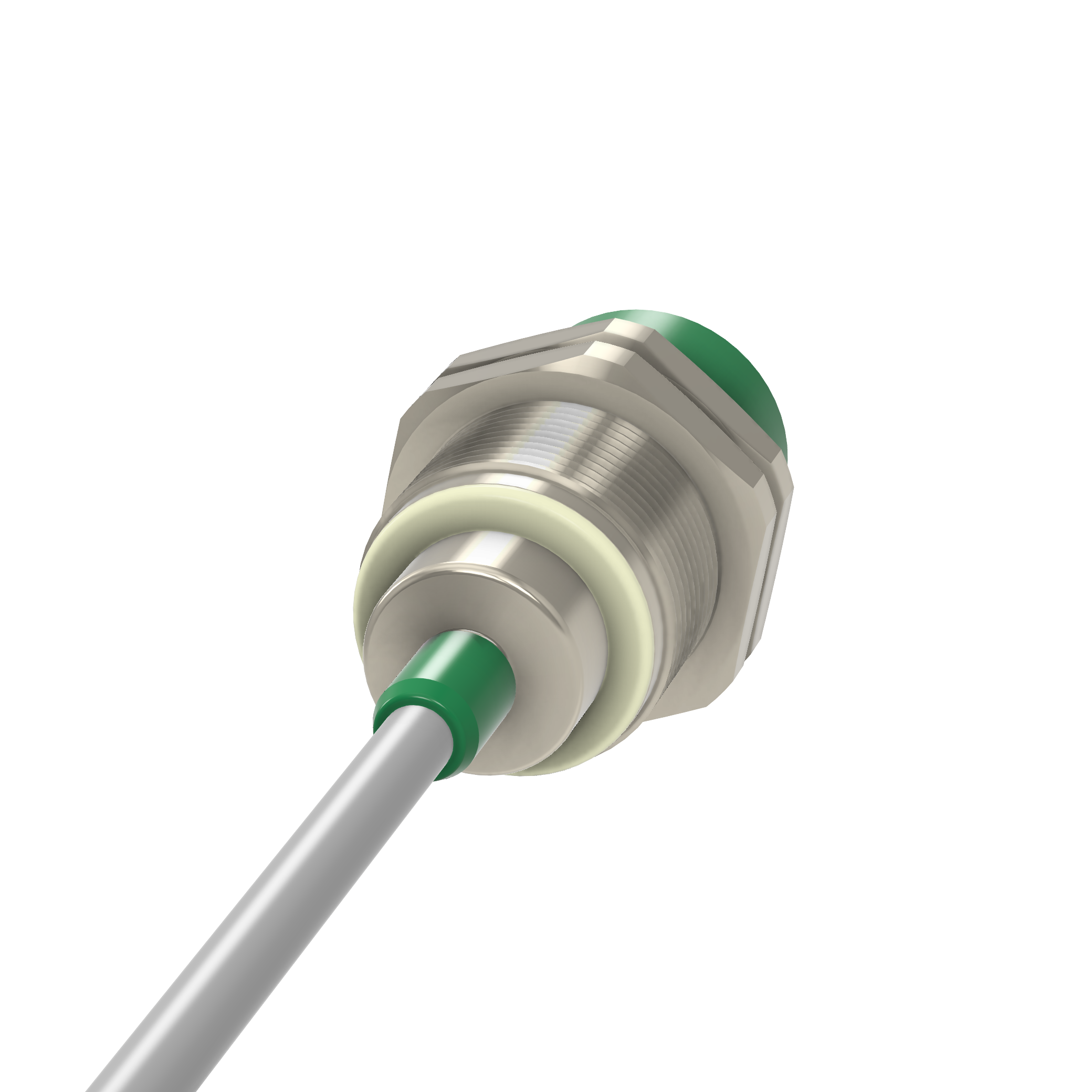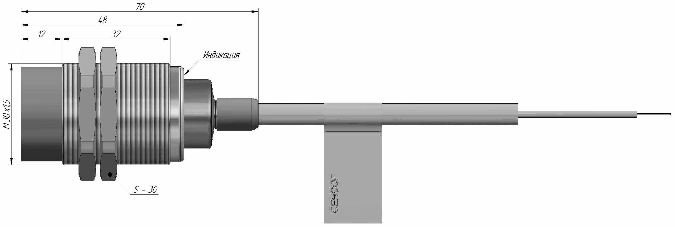 Индуктивный датчик ВБИ-М30-49В-2123-С.6 в цилиндрическом корпусе из никелированной латуни Ø30 мм, в общепромышленном высокотемпературном исполнении.