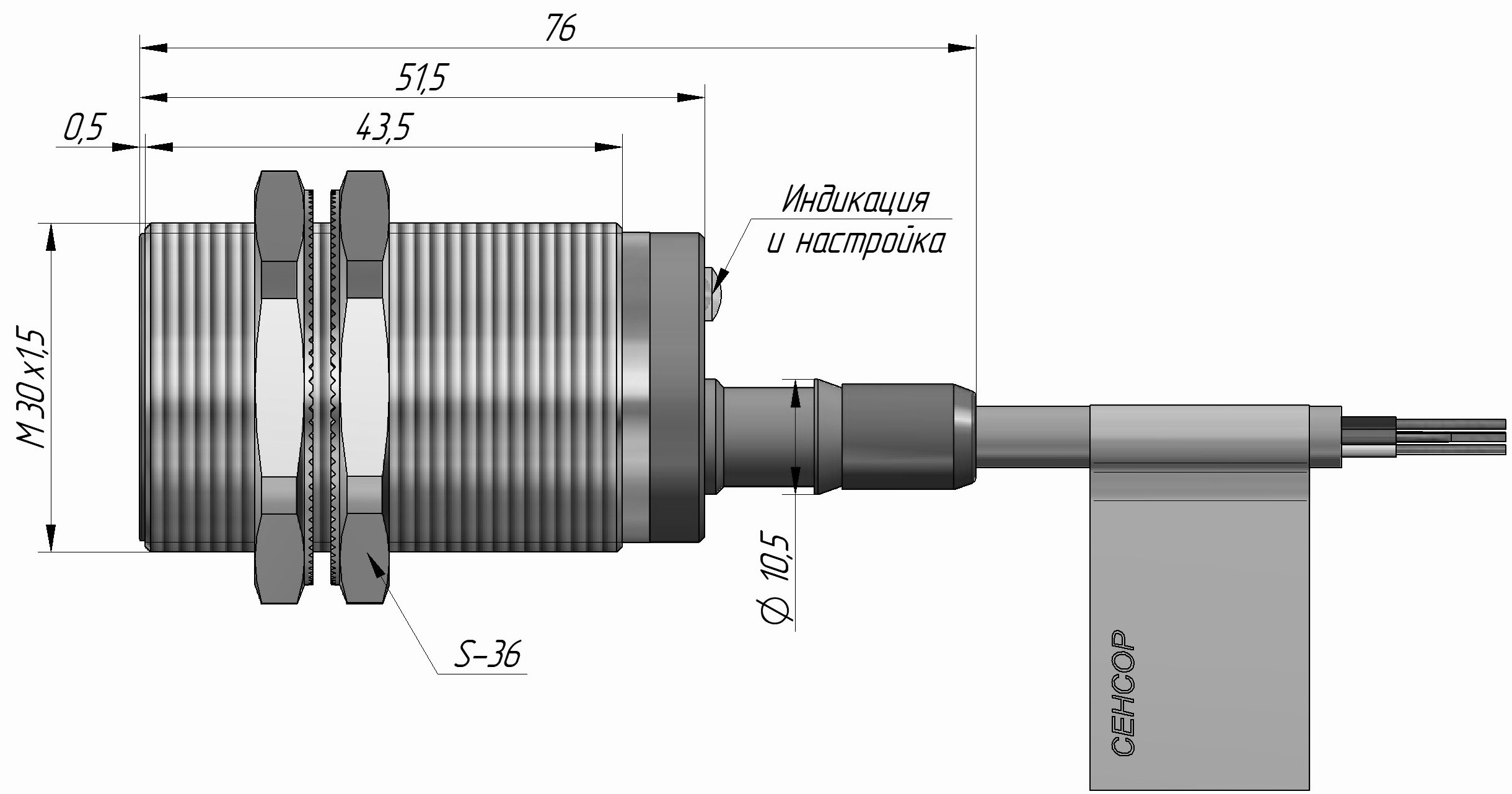 Индуктивный датчик ВБИ-М30-50С-1123-СА.51 в цилиндрическом корпусе из никелированной латуни Ø30 мм, в общепромышленном исполнении.