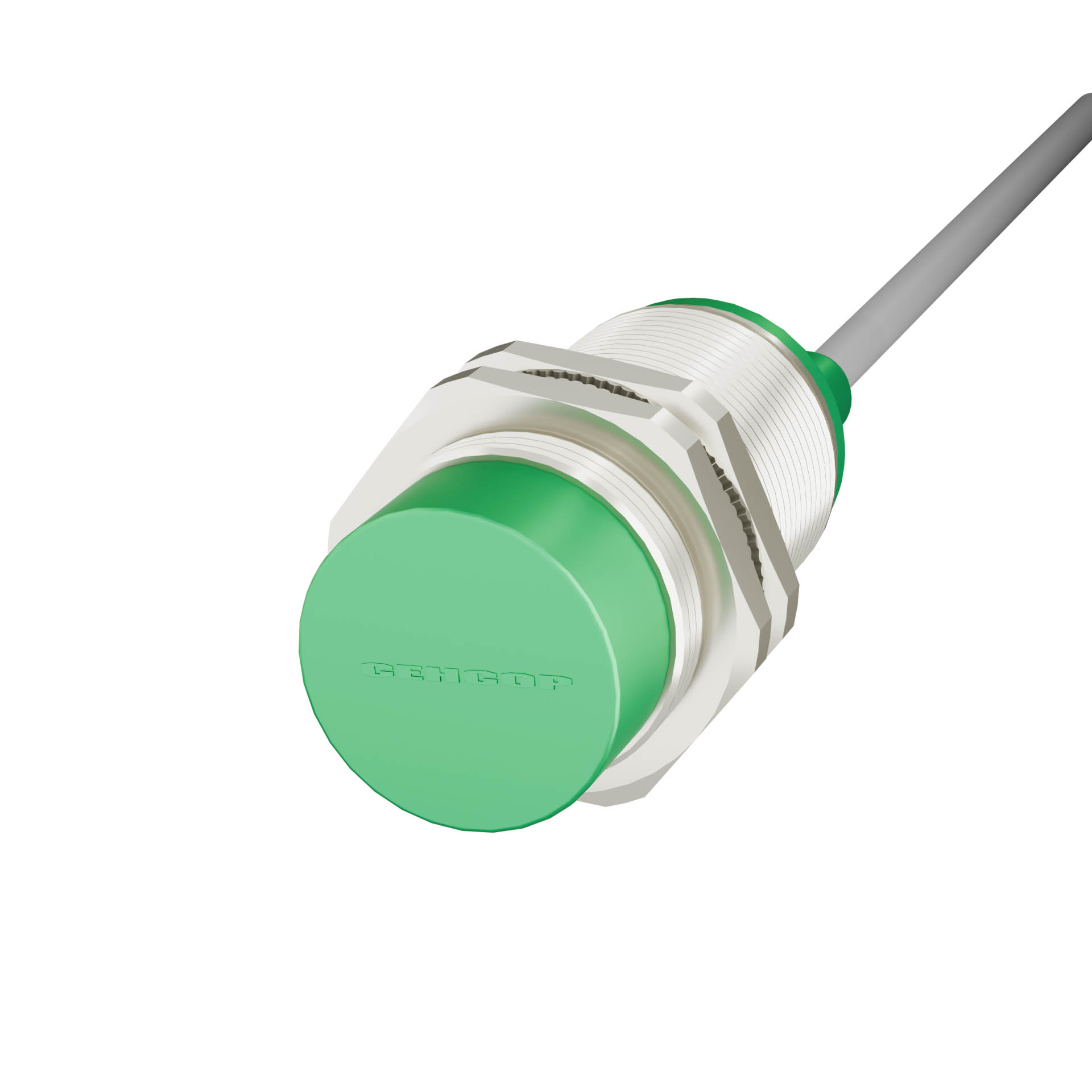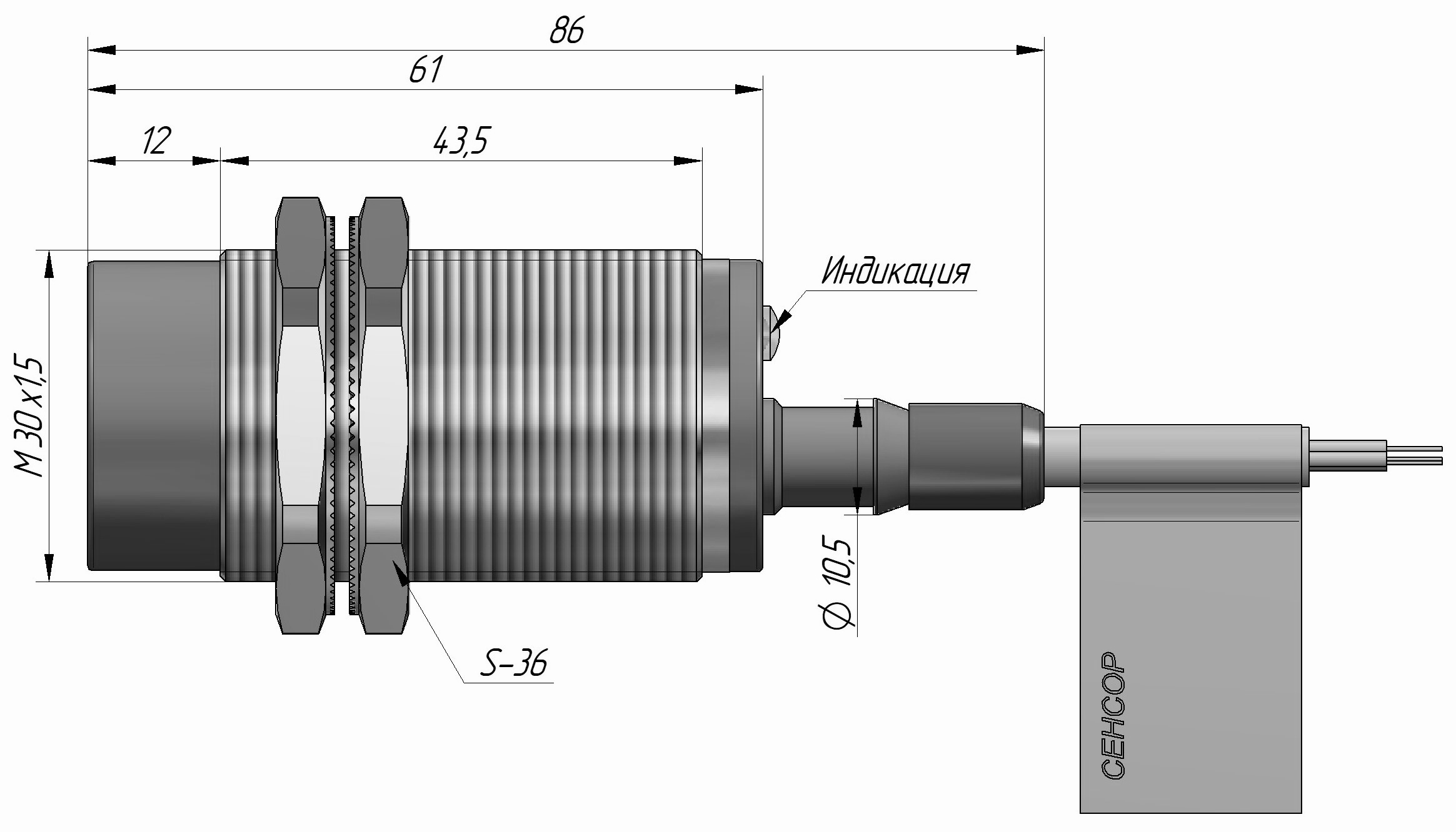 Индуктивный датчик ВБИ-М30-65С-2123-С в цилиндрическом корпусе из никелированной латуни Ø30 мм, в общепромышленном исполнении.