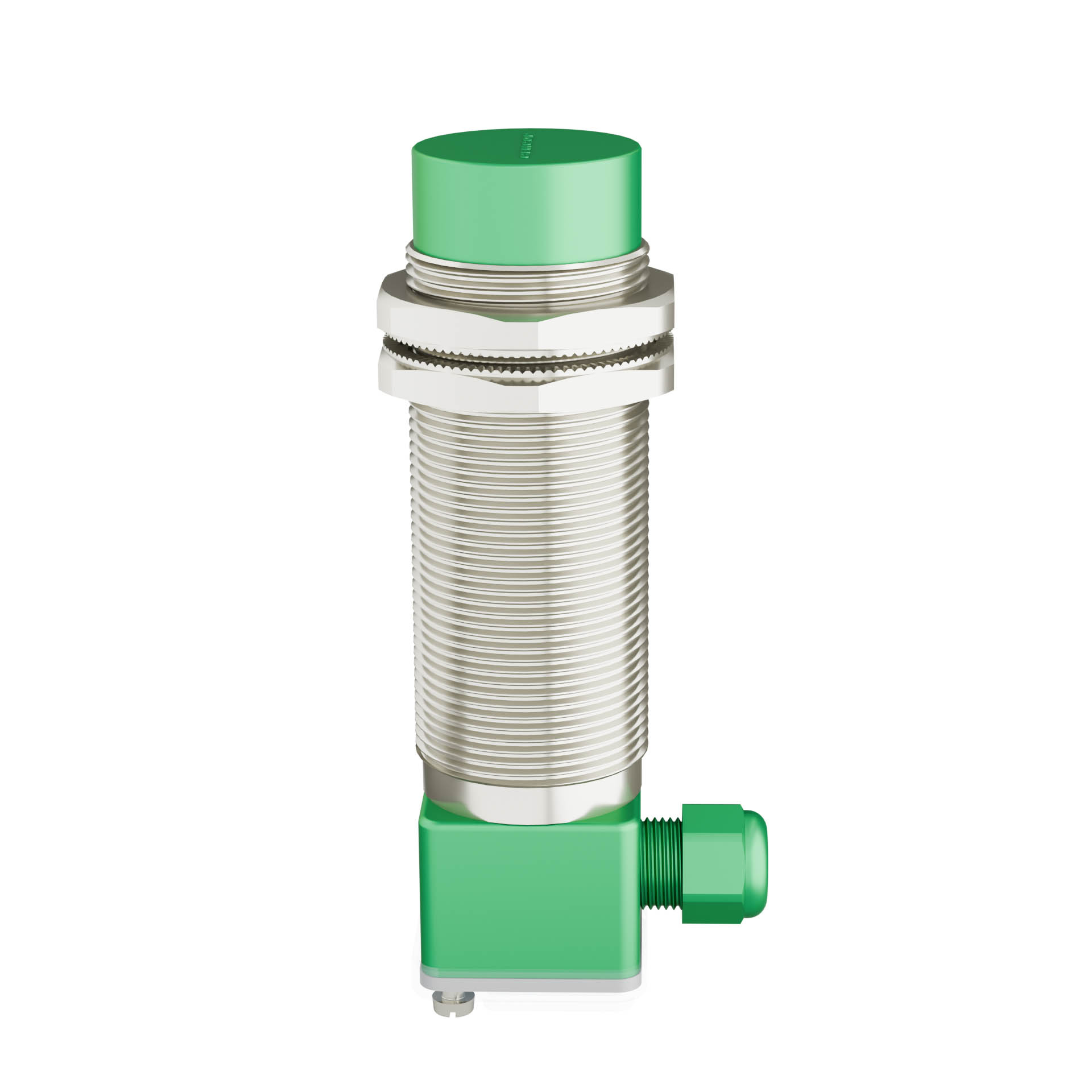 Индуктивный датчик ВБИ-М30-91К-2351-З в цилиндрическом корпусе из никелированной латуни Ø30 мм, в общепромышленном исполнении.
