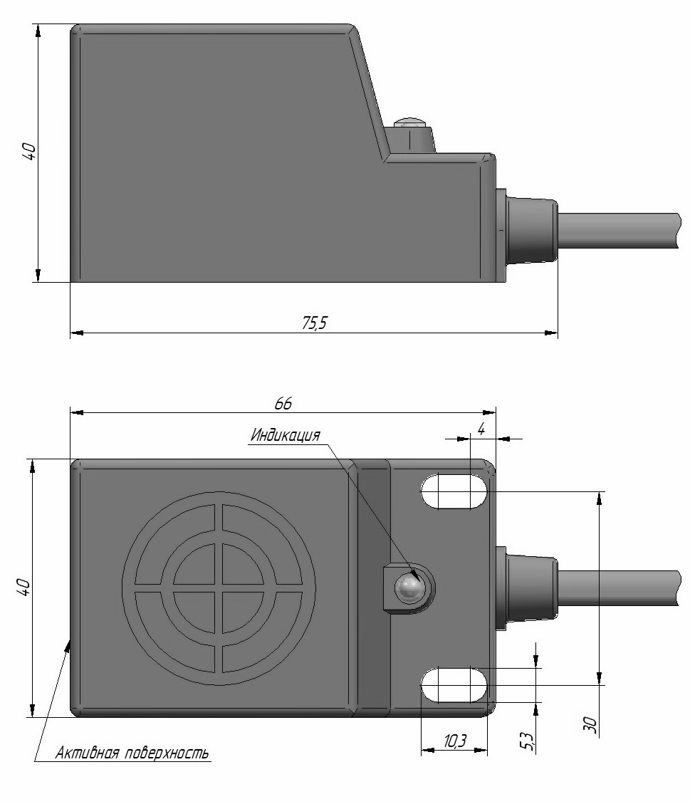 Индуктивный датчик ВБИ-П40Т-65У-1123-С в прямоугольном корпусе из полиамида, в общепромышленном исполнении.