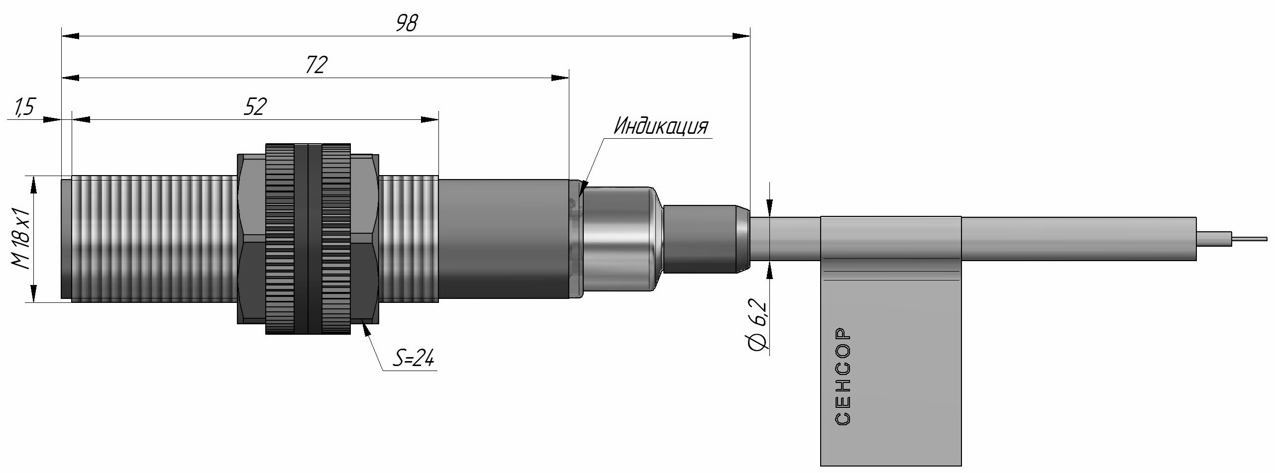 Индуктивный датчик ВБИ-Ц18-73В-1113-С.9 в цилиндрическом корпусе из полиамида армированного стекловолокном Ø18 мм, в общепромышленном низкотемпературном исполнении.